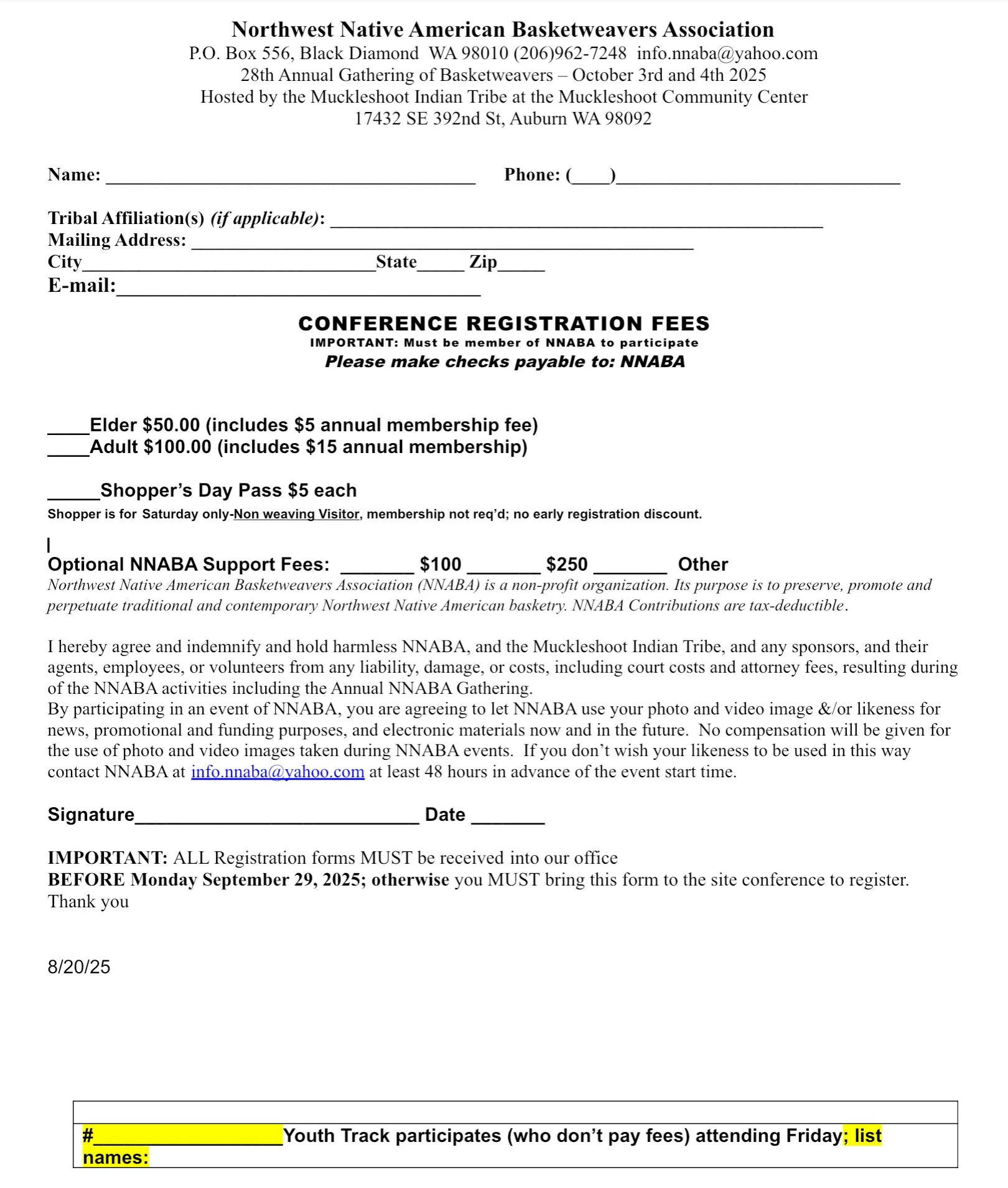 To register by mail as soon as possible, print the form by clicking the link on the right. Mail the completed form and check for payment (payable to NNABA) to: